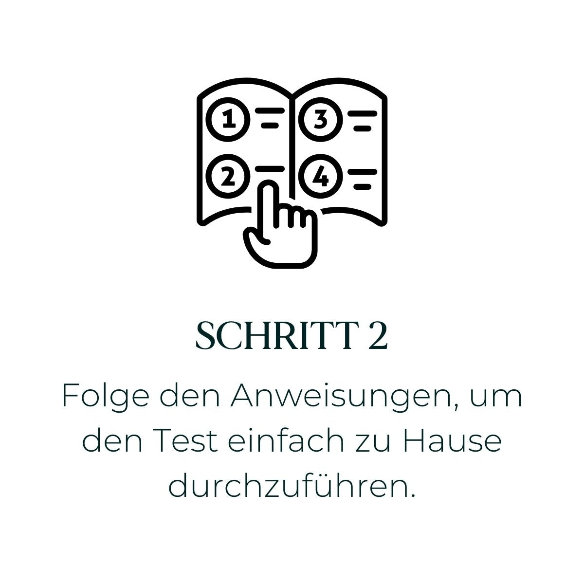 Mit nur einem kleinen Fingerstich kannst du die Probe bequem zu Hause entnehmen. Sende sie im beiliegenden, vorfrankierten Umschlag an unser zertifiziertes Labor und erhalte deine Ergebnisse innerhalb weniger Tage per Post. Außerdem erhältst du einen kostenlosen digitalen Ratgeber, der dir hilft, deine Ergebnisse besser zu verstehen und fundierte nächste Schritte zu planen.